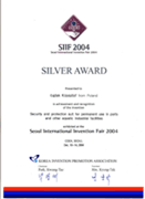 SREBRNY MEDAL Międzynarodowych Targów Wynalazków w Seulu dla kombinezonu asekuracyjno-ochronnego