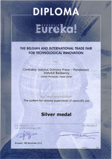 Srebrny medal 62. Międzynarodowych Targów Wynalazczości, Badań Naukowych i Nowych Technik Brussels Innova 2013 w towarzyszącym im konkursie Brussels Eureka