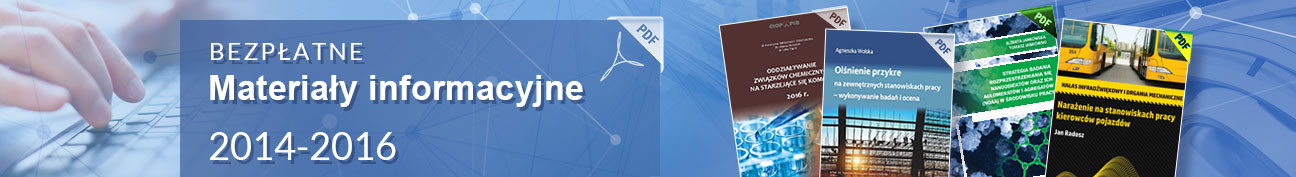 Bezpłatne materiały informacyjne BHP ("open access") przygotowane na podstawie wyników uzyskanych w ramach III etapu programu wieloletniego pn. „Poprawa bezpieczeństwa i warunków pracy” w latach 2014-2016, finansowanego w zakresie badań naukowych i prac rozwojowych ze środków Ministerstwa Nauki i Szkolnictwa Wyższego/Narodowe Centrum Badań i Rozwoju, oraz w zakresie służb państwowych ze środków Ministerstwa Rodziny, Pracy i Polityki Społecznej. Koordynator programu: Centralny Instytut Ochrony Pracy – Państwowy Instytut Badawczy.