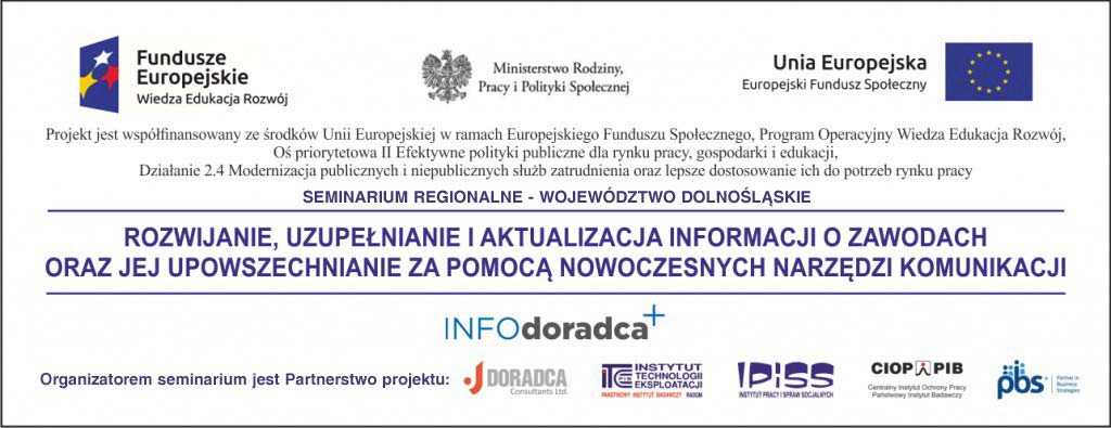 Seminarium regionalne – woj. dolnośląskie: „Rozwijanie, uzupełnianie i aktualizacja informacji o zawodach oraz jej upowszechnianie za pomocą nowoczesnych narzędzi komunikacji”